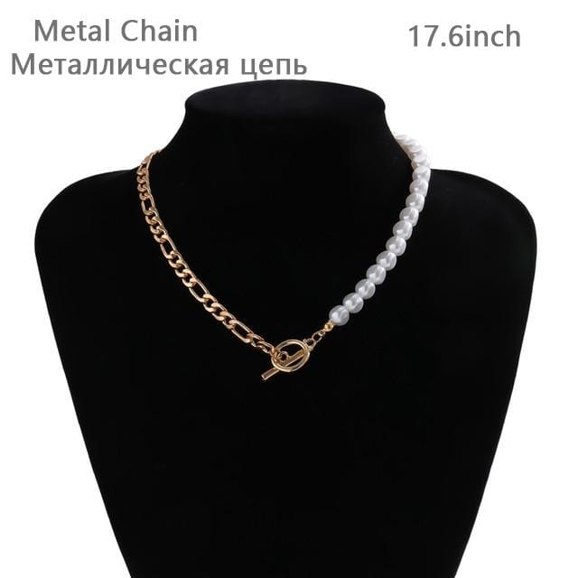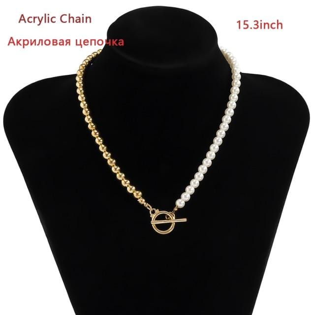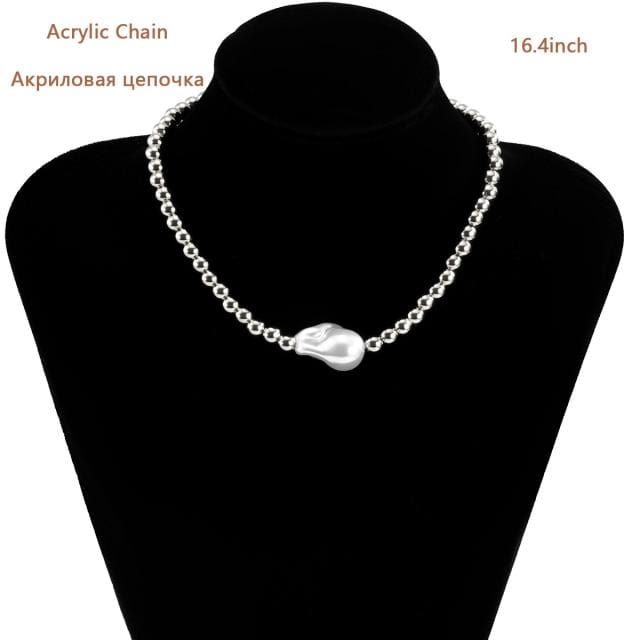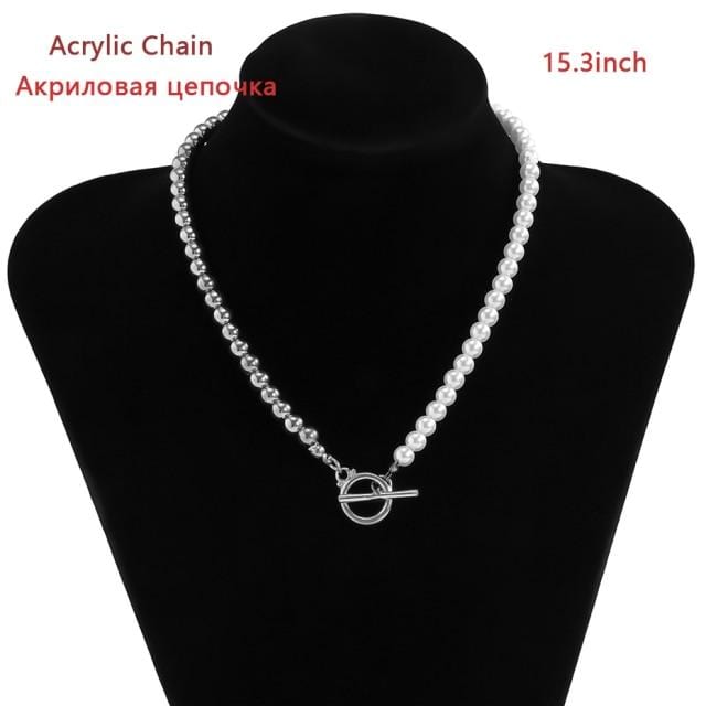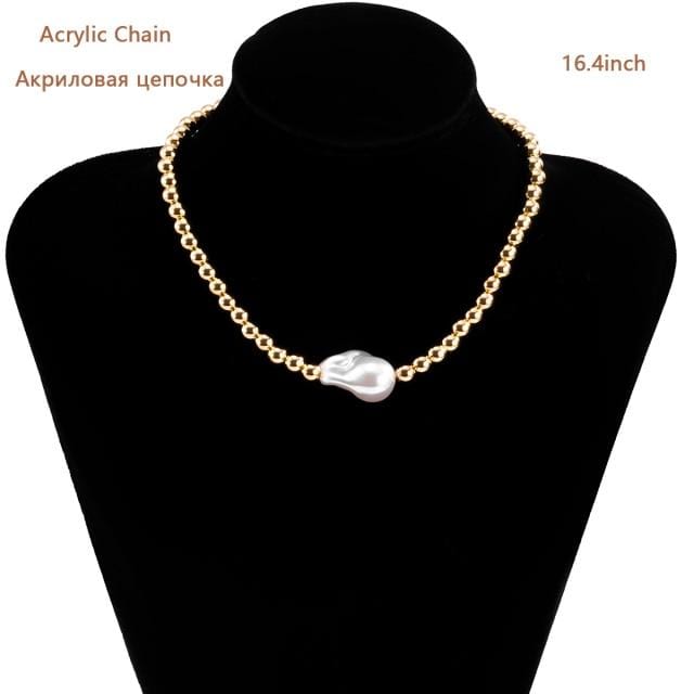 2021 New Fashion Baroque Pearl Chain Necklace Women Collar Wedding Punk Toggle Clasp Circle Lariat Bead Choker Necklaces Jewelry