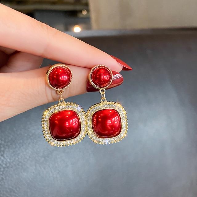 2021 New Sexy Chinese Red Square Pendant Woman‘s Earrings Fashion Luxury Earring For Korean Jewelry Party Unusual Gift For Girls