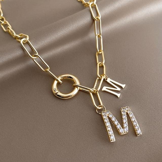 2021 Punk Style Hip Hop Thick Chain Short Necklace For Woman M Letter Pendant Neck Chain Korean Fashion Jewelry Sweater Chain