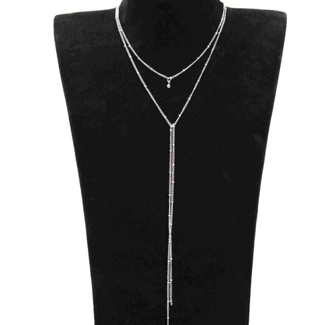 2021 Simple Gold Silver Color Chain Choker Necklace Long Beads Tassel Chocker Necklaces For Women collar collier ras du cou