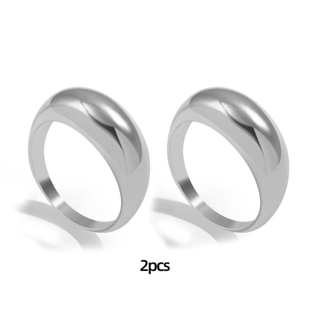 2pcs Punk Hip-hop Chunky Rings for Women Girls Trendy Geometric Circle Stack Gold Ring Minimalist Party Wedding Jewelry