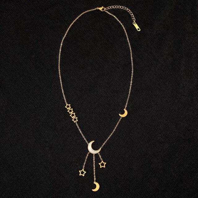 316L Stainless Steel 2021 New Fashion Upscale Jewelry Shell Stars Moon Tassel Charms Chain Choker Necklaces & Pendants For Women