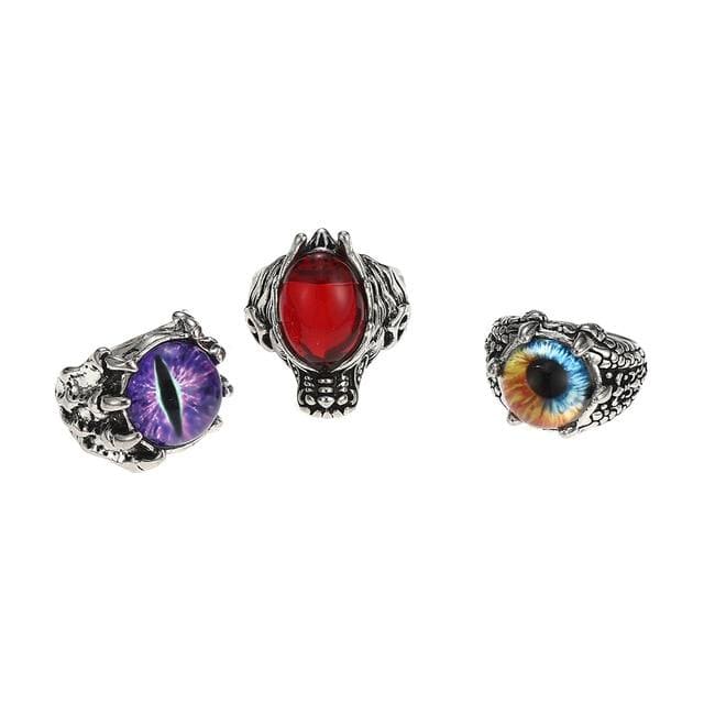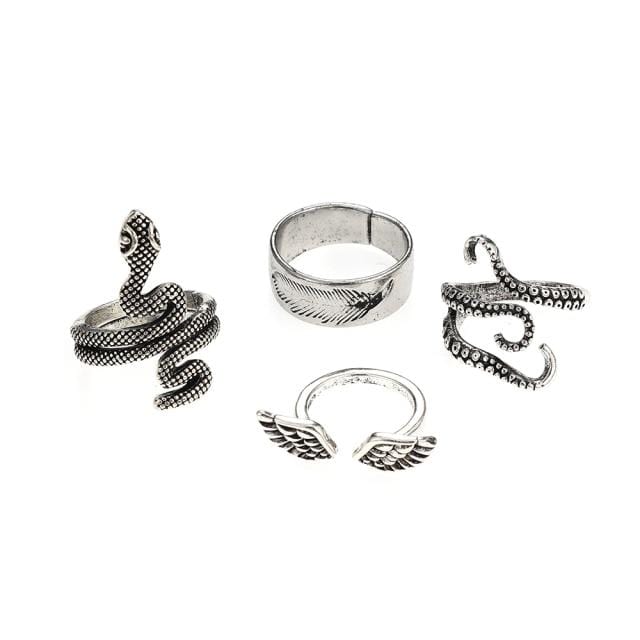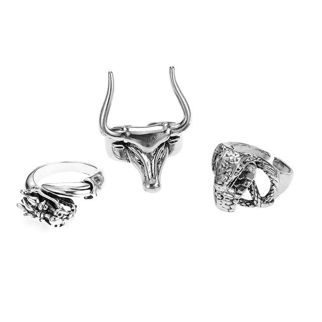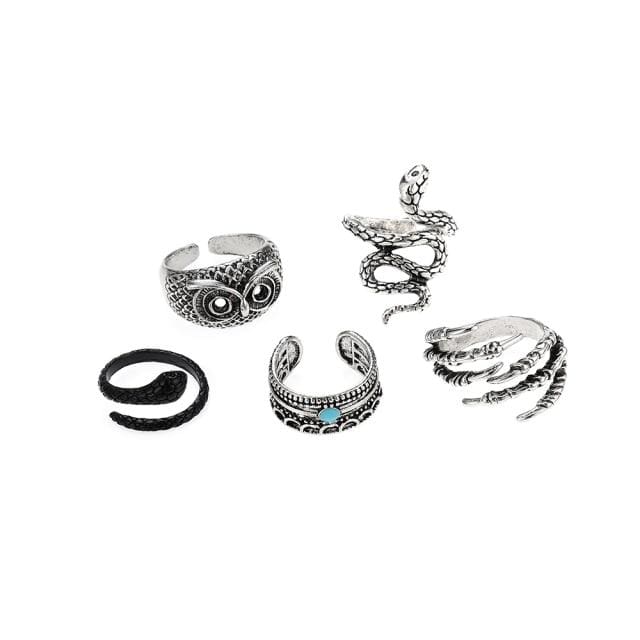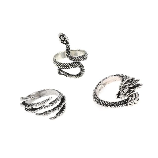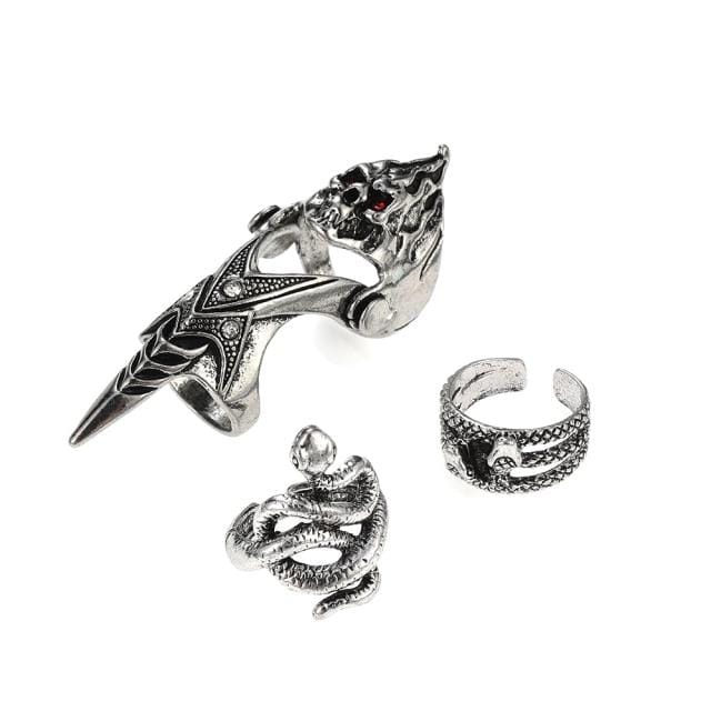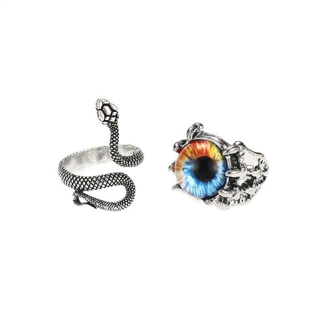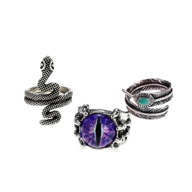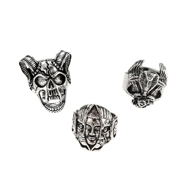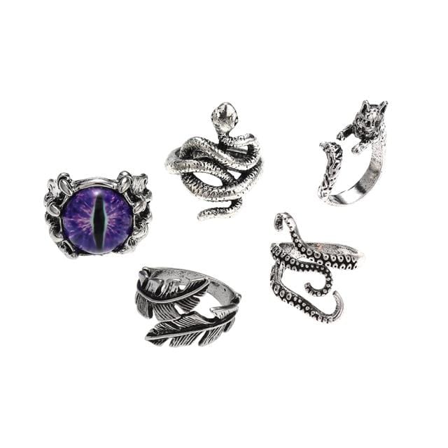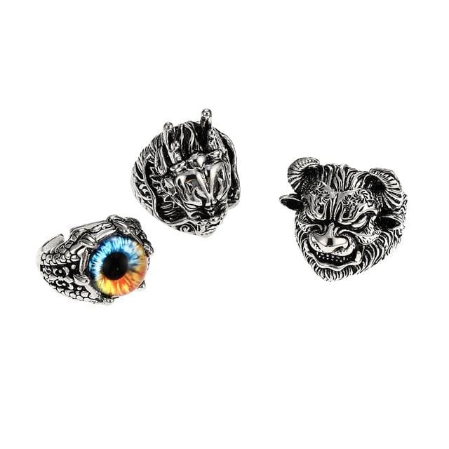 3pc 4pc 5pc Vintage Gothic Snake Rings Men Bull Head Skull Feather Dragon Cross Animal Men Ring Punk Jewelry Evil Eye Ball Ring