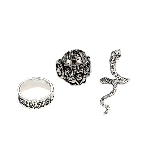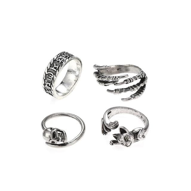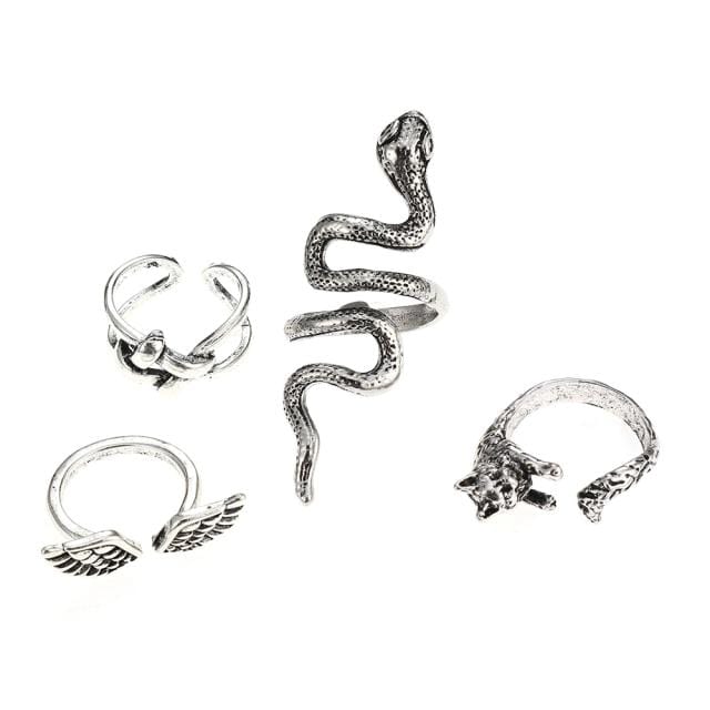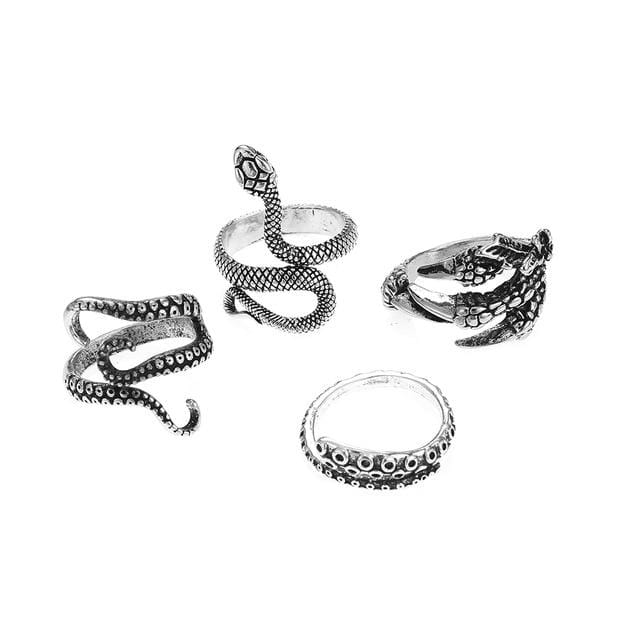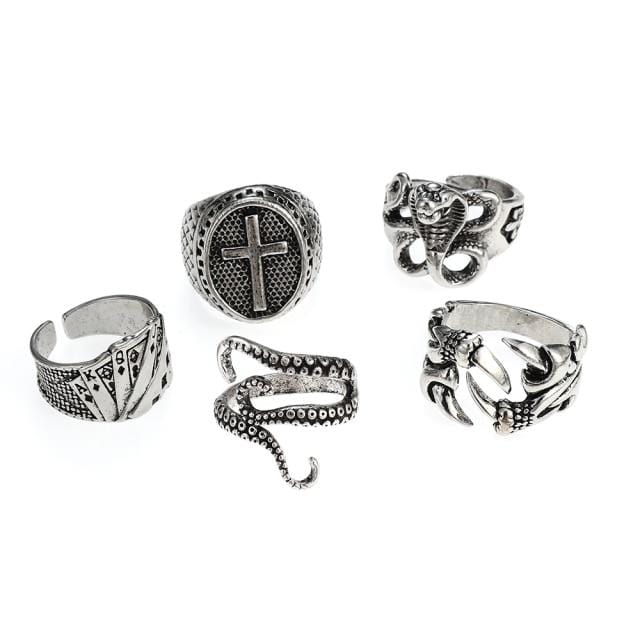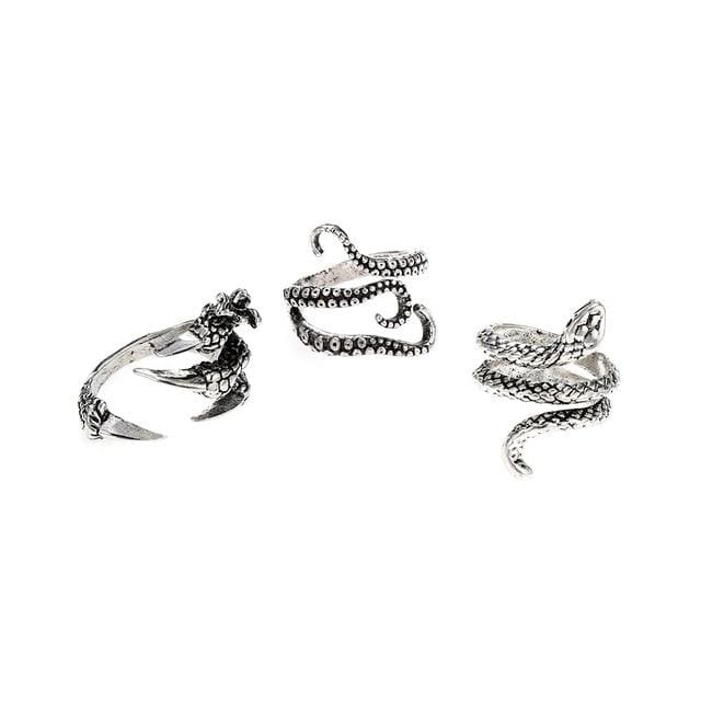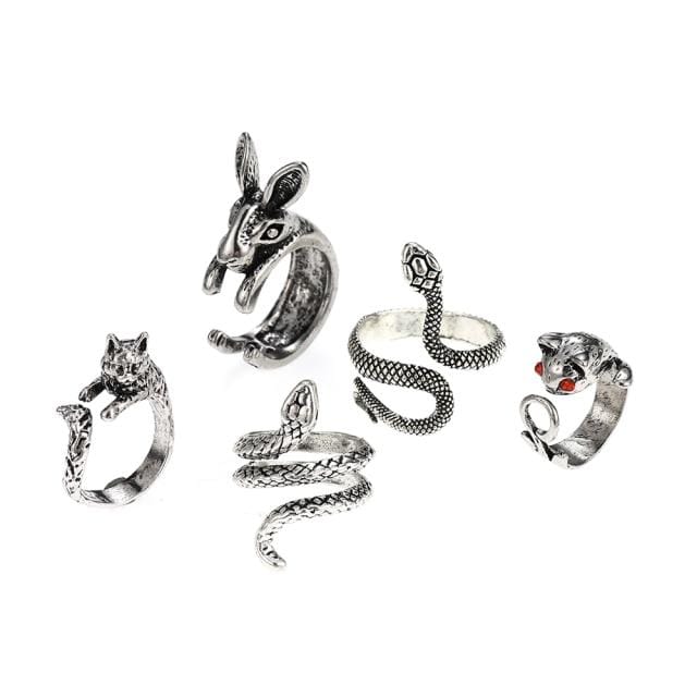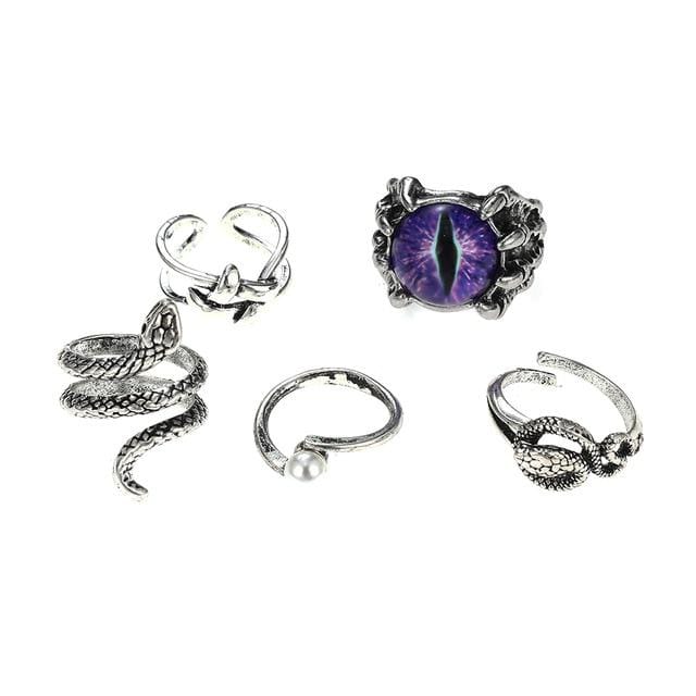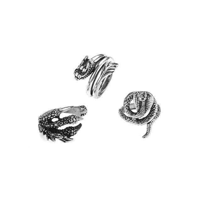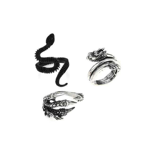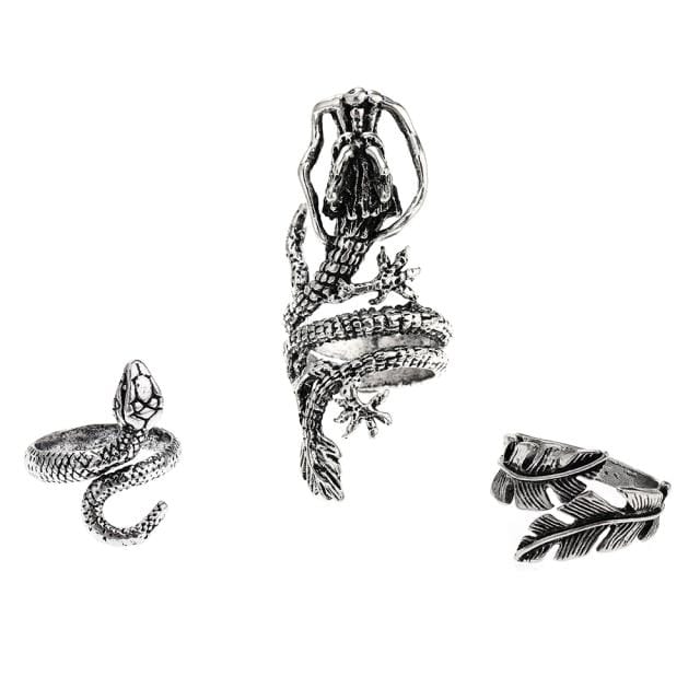 3pc 4pc 5pc Vintage Gothic Snake Rings Men Bull Head Skull Feather Dragon Cross Animal Men Ring Punk Jewelry Evil Eye Ball Ring