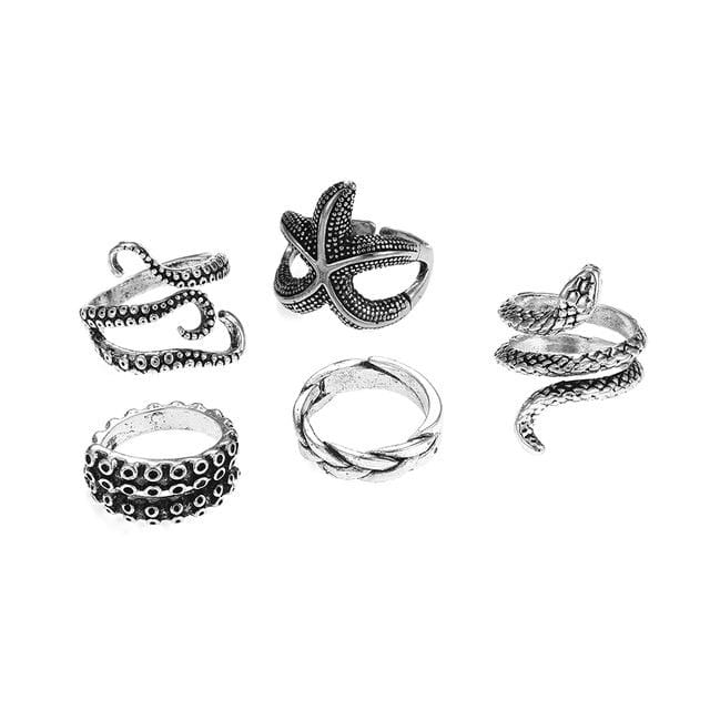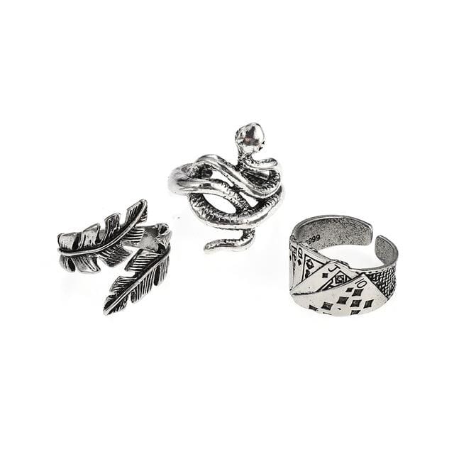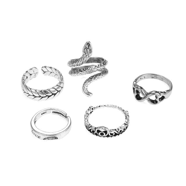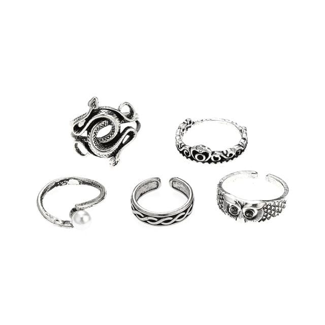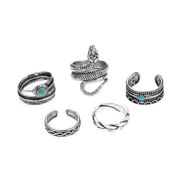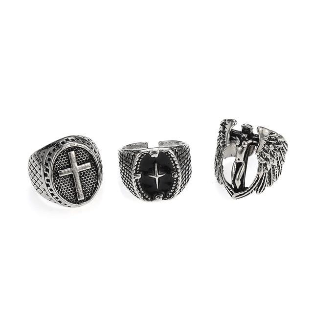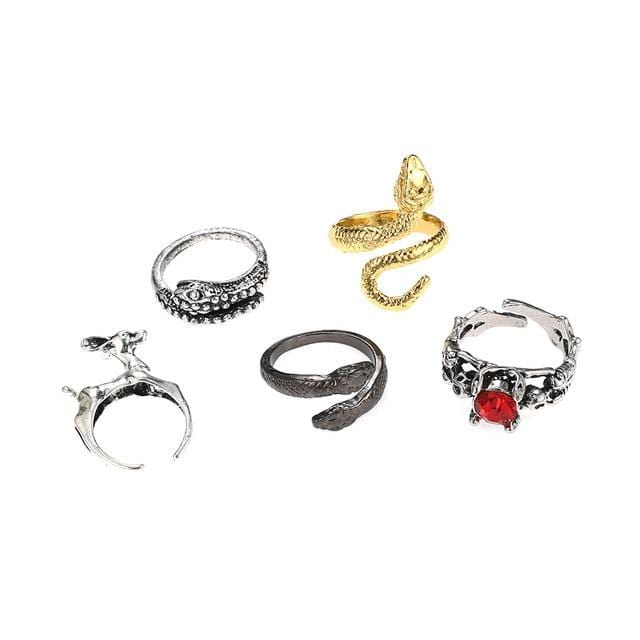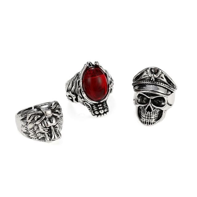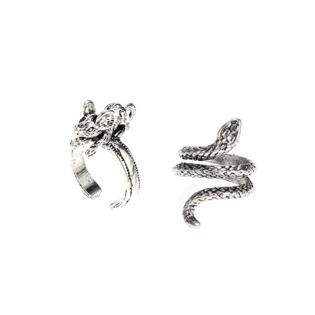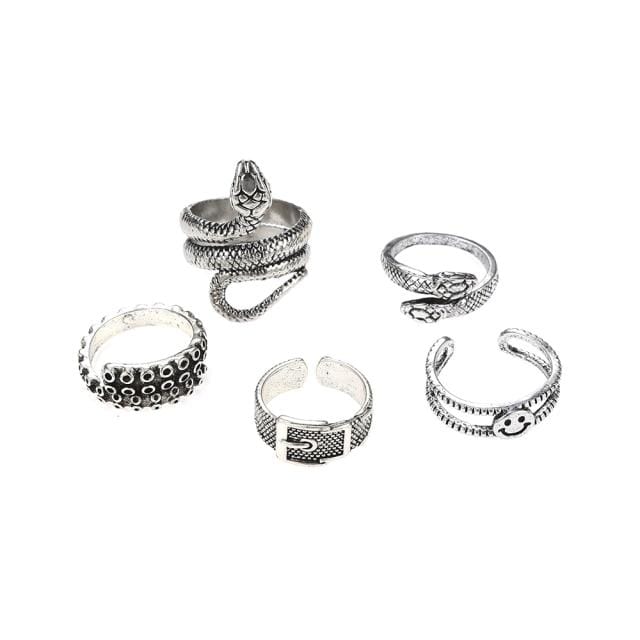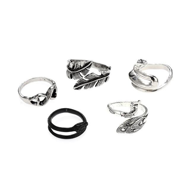 3pc 4pc 5pc Vintage Gothic Snake Rings Men Bull Head Skull Feather Dragon Cross Animal Men Ring Punk Jewelry Evil Eye Ball Ring