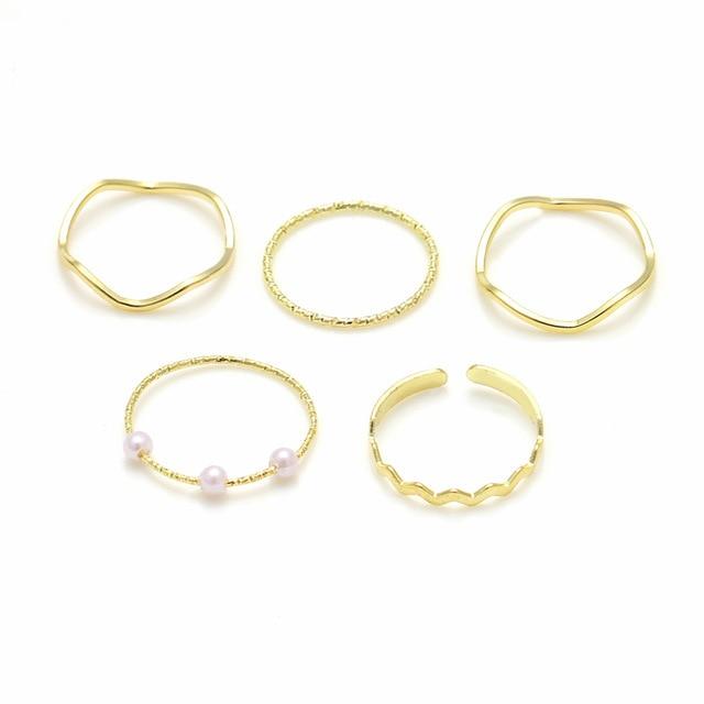 5 pcs/set Fashion Imitation Pearl Rings for Women Gold Color Round Wave Geometric Rings Set Wedding Party Jewelry New