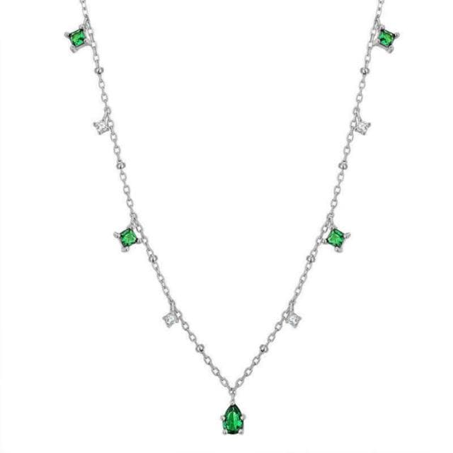 925 Sterling Silver Choker Necklace for Women Exquisite Green Zircon Clavicle Chain Necklace Gifts S-N742