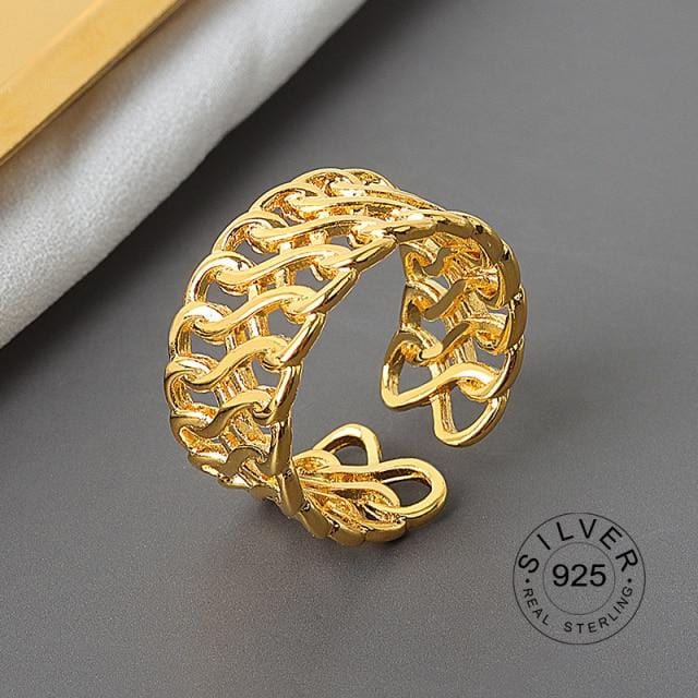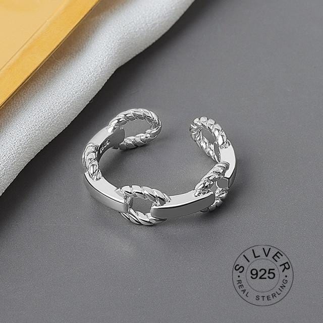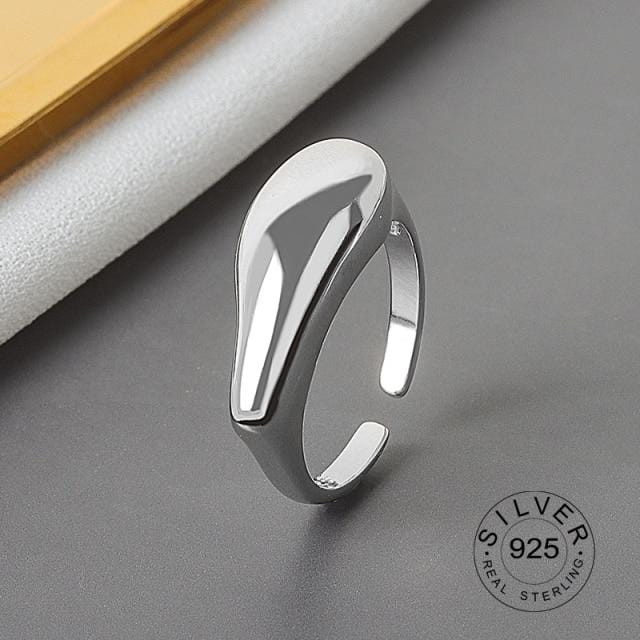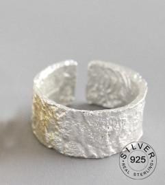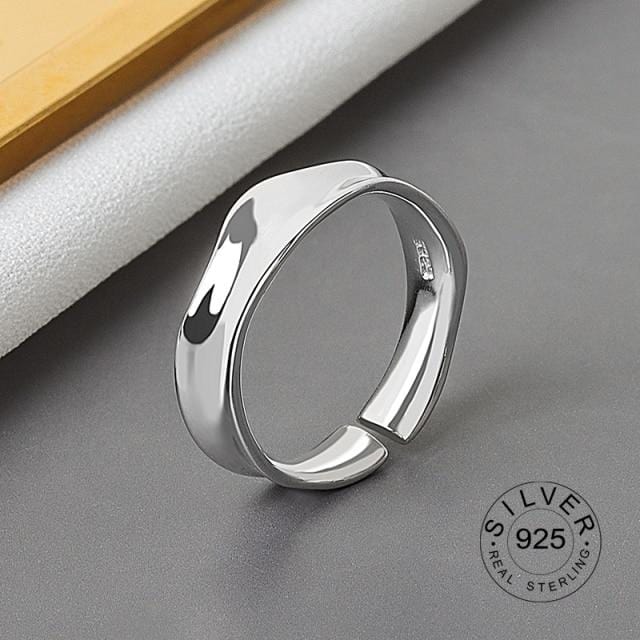 925 Sterling Silver Open Ring For Women INS Niche Irregular Wave Sand Surface Wide Noodle Original Party Birthday Gift