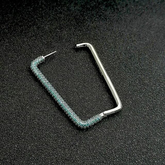 925 sterling silver rectangular silver rectangular earrings set with lake blue zircon luxury brand Monaco women's jewelry