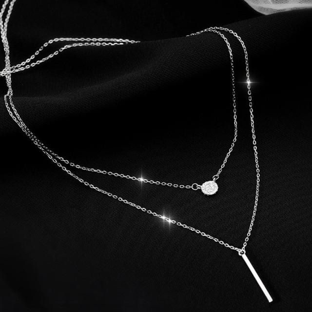 925 Sterling Silver Square Flash Diamond Round Double Necklace Women Clavicle Chain Fine Jewelry Party Wedding Accessories
