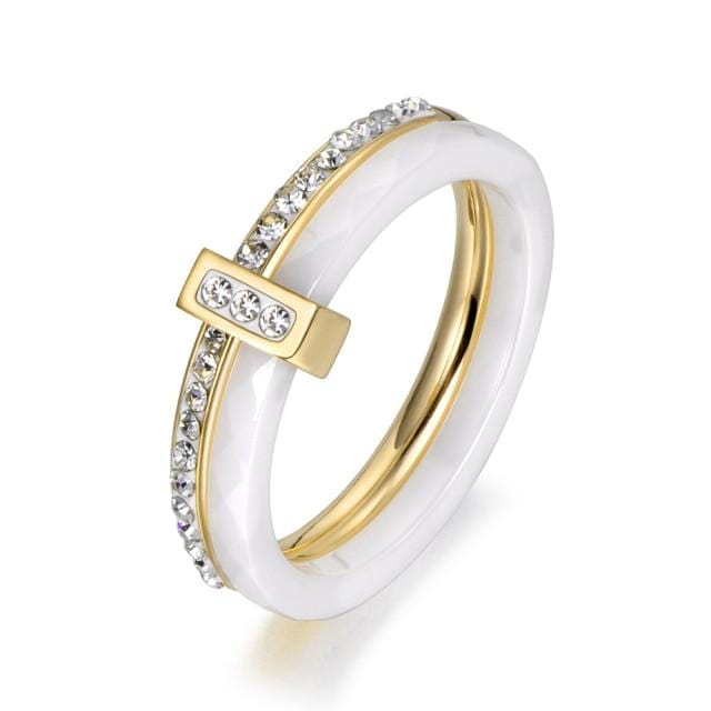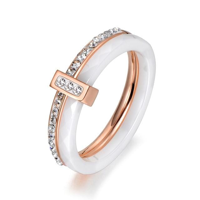 AENINE Fashion Black/White Ceramic Crystal Wedding Rings Jewelry For Women Girls Rose Gold Stainless Steel Bohemia Ring AR18054