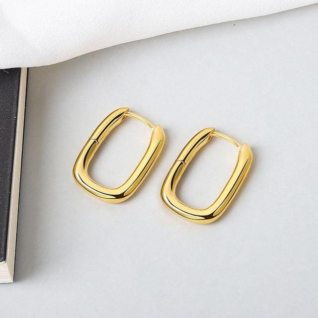 ANENJERY 925 Sterling Silver O Shaped Earrings for Women Geometric French Gold Jewelry Party Accessories Gifts S-E1379