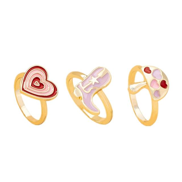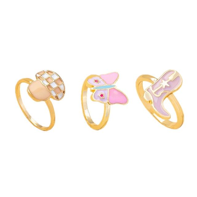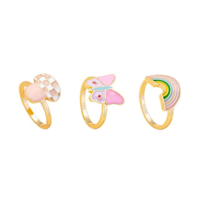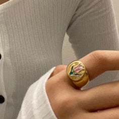 AOMU 1SET 2020 Korea New Hot Small Daisy Tulip Metal Pendant Necklace Rings Bracelet For Women Girls Jewelry Set Gifts
