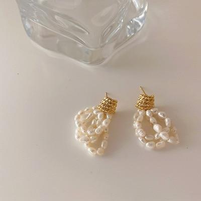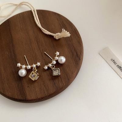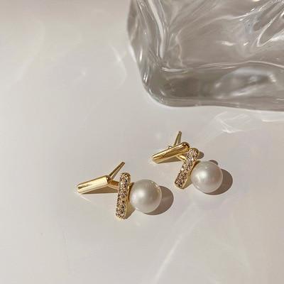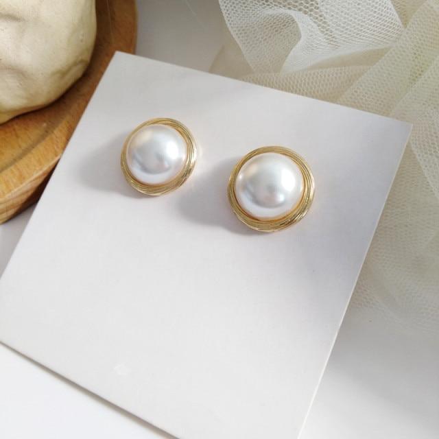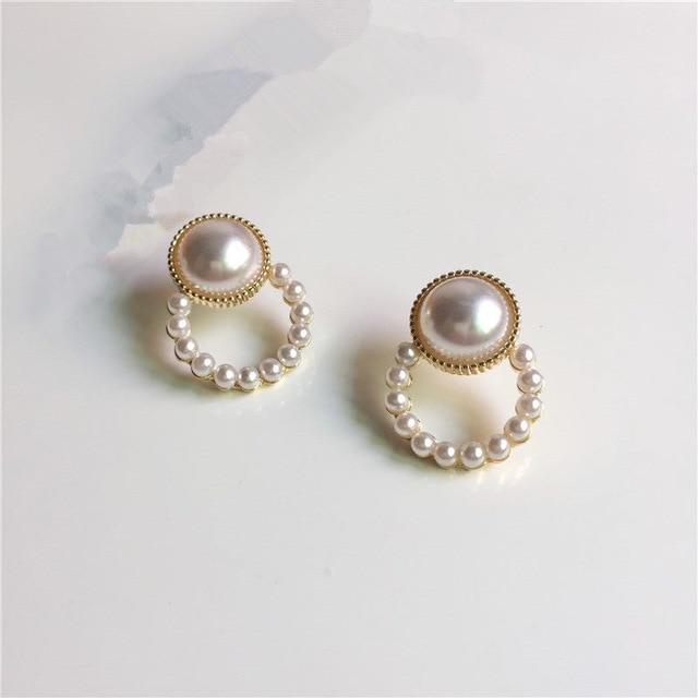 AOMU 2020 Chic Imitation Pearl Geometric Fan Shaped Elegant Stud Earrings for Women Girls Jewelry Party Asseccoires