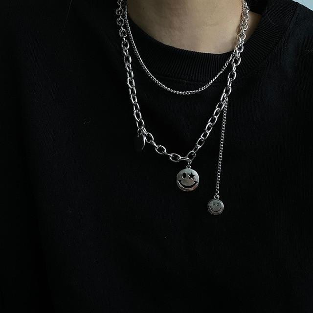 AOMU 2020 Fashion Multilayer Hip Hop Long Chain Necklace For Women Men Jewelry Gifts Key Cross Pendant Necklace Accessories