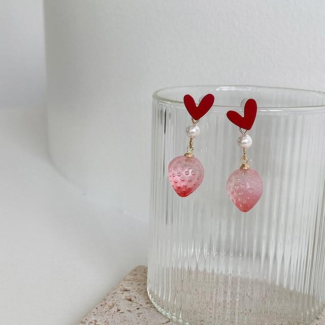 AOMU 2020 New Japan Korean Cherry Fruit Shaped Drop Earrings For Women Sweet Girls Cute Brincos Line Pendientes Jewelry Gifts