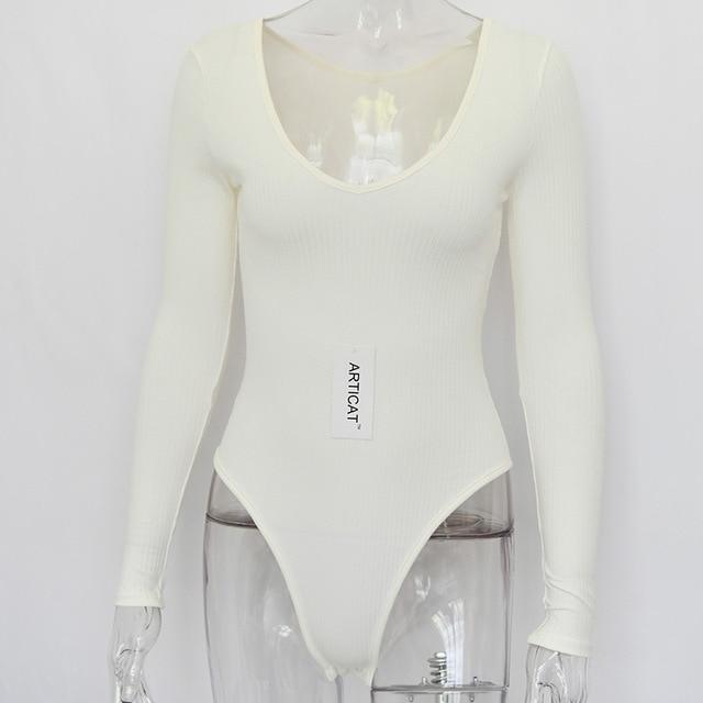 Articat Off Shoulder Ribbed Knitted Sexy Bodysuit Women Black V Neck Summer Rompers Womens Jumpsuit Basic Playsuit Womens Tops