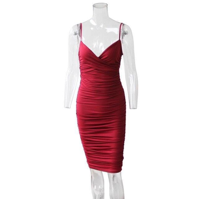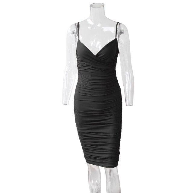 Articat Spaghetti Strap Backless Ruched Dress Solid Sleeveless Long Dresses Ladies Streetwear Elastic Modal Party Vestidos