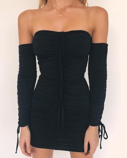 Articat Women Autumn Winter Bandage Dress Women 2020 Sexy Off Shoulder Long Sleeve Slim Elastic Bodycon Party Dresses Vestidos