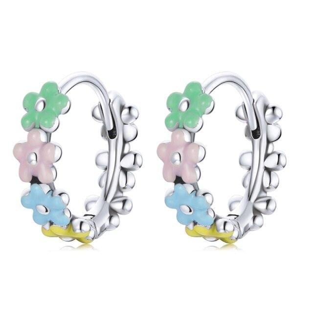 bamoer 925 Sterling Silver Multiple Colorful Daisy Flower Ear Buckles Earrings for Women Clips Chic Fashion Jewelry Arete BSE508