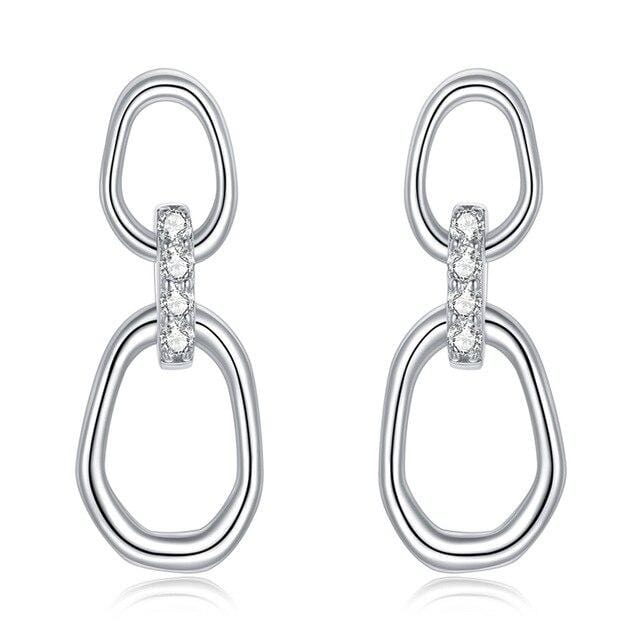 bamoer Geometric Necklace Earring Buckles 925 Sterling Silver Double Button Simple CZ Jewelry for Women Fine Jewelry SCE1016