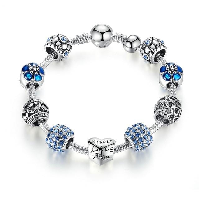 BAMOER Silver Plated Charm Bracelet & Bangle with Love and Flower Beads Women Wedding Jewelry 4 Colors 18CM 20CM 21CM PA1455