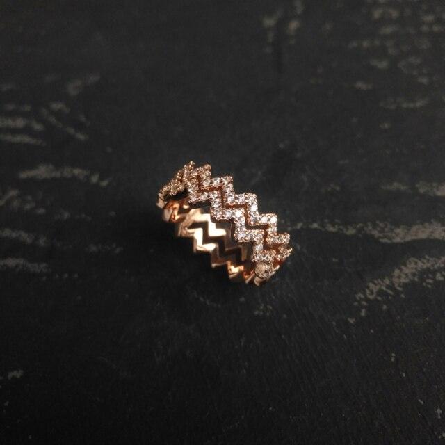 Bewill 925 Sterling Silver Fine Original 1:1 Inlaid Zircon Wave Ring Lovers Ring Valentine's Luxury Brand Monaco Jewelry
