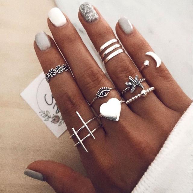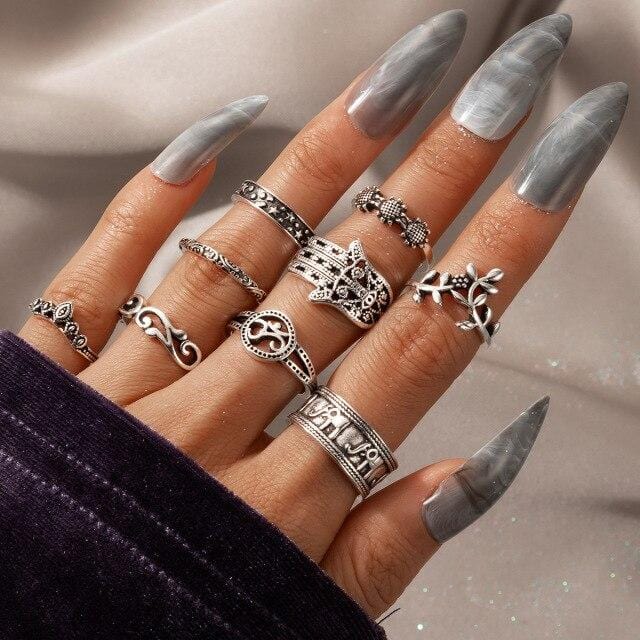 bohemia adjustable women rings hippie jewelry snake ring set stainless steel rings schmuck finger ring bts accesorios jewellery