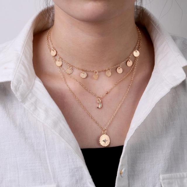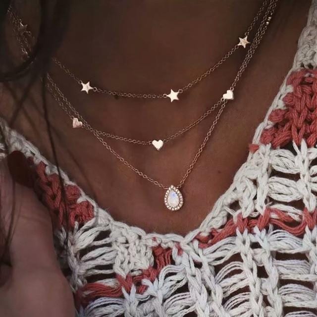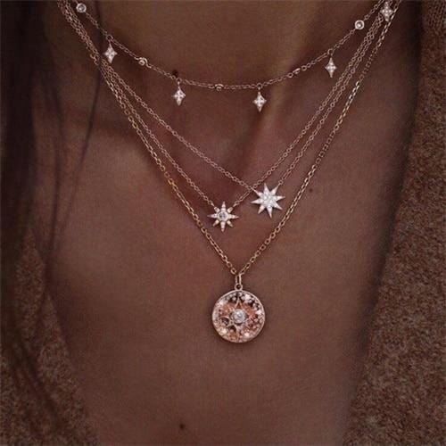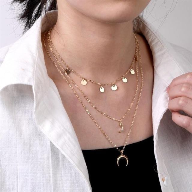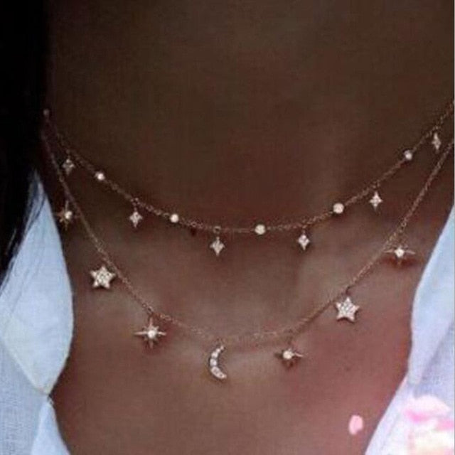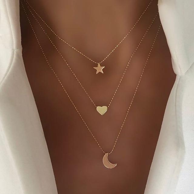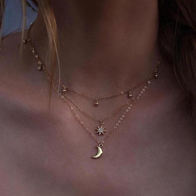 Bohemian Gold Moon Choker Necklace for Women Chains Statement Necklace Star Map Heart Pendant Necklaces Boho Jewelry Gift
