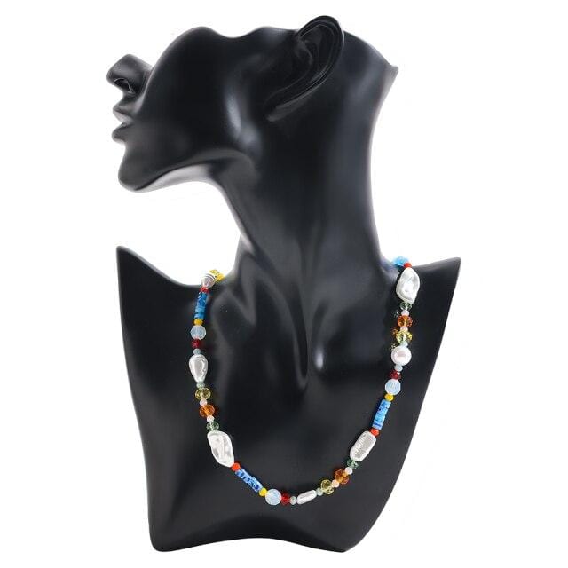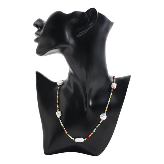 Bohemian Irregular Beaded Pearl Necklace for Women Colorful Round Eye Beads Chain Choker Necklace Beach Vacation Jewelry