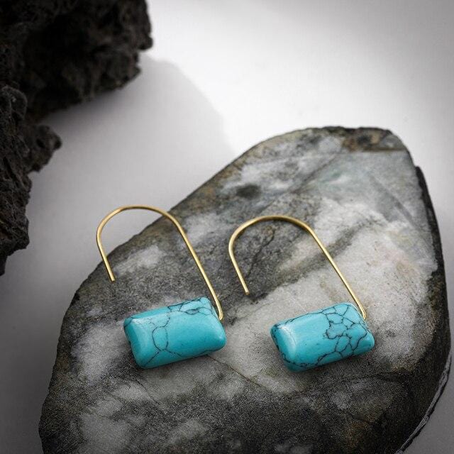 Bohemian Turquoises Beads Drop Earrings Simple Geometric Stone Long Hook Earrings for Women Party Jewelry Accessories