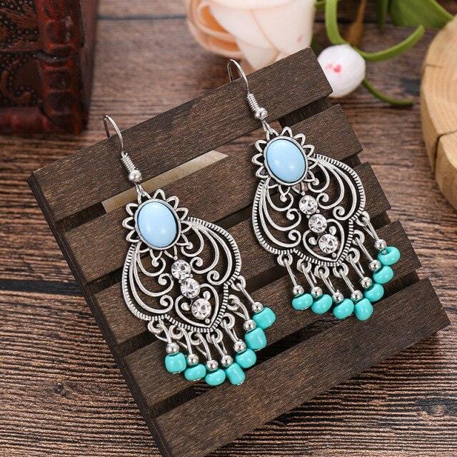 Bohemian Women's Gem Stone Beaded Earrings Turkish Tribal Gypsy Indian Jewelry Retro Boho Holiday Style Vintage Earrings Ethnic