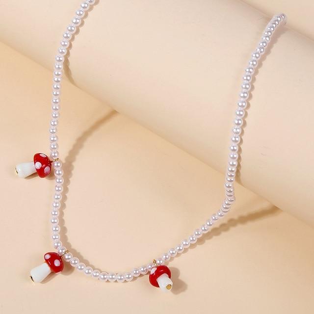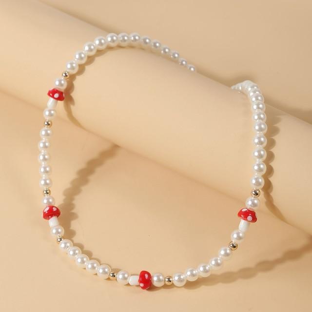Bohemian Women's Multicolor Beads Handmade Necklaces For Women Boho Fashion Glass Mushroom Pendant Necklace Ladies Jewelry Gift