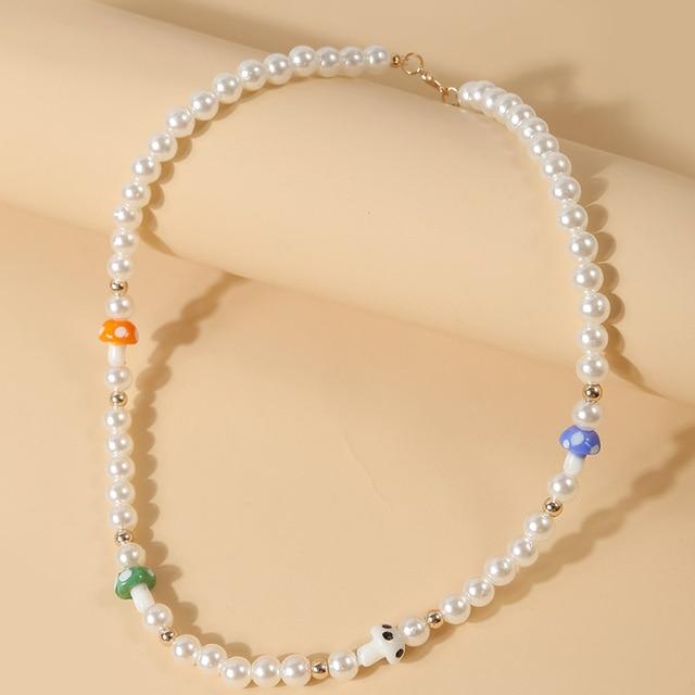 Bohemian Women's Multicolor Beads Handmade Necklaces For Women Boho Fashion Glass Mushroom Pendant Necklace Ladies Jewelry Gift