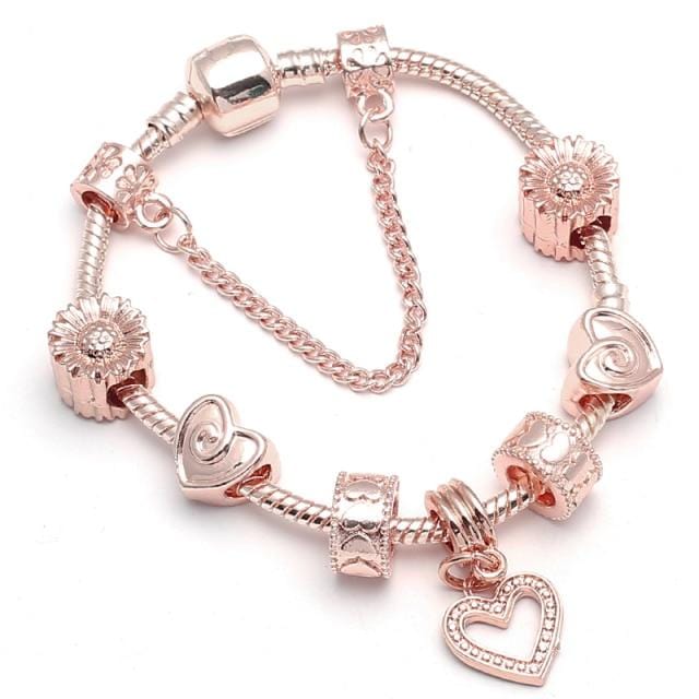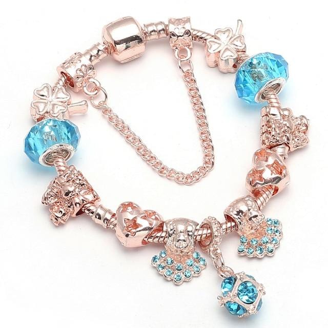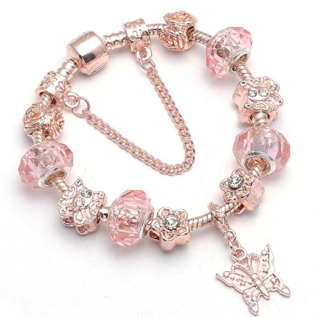 BRACE CODE Rose golden butterfly Charm Bracelet With An crown Beads Fits Fine Bracelet Women Party Jewelry Dropshipping