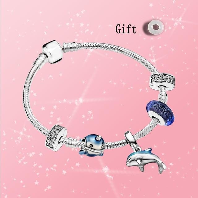 Buipoey Ocean Collection Blue Turtle Seahorse Narwhal Beaded Dolphin Charm Bracelets For Boys Girl Original Kids Child Bracelet