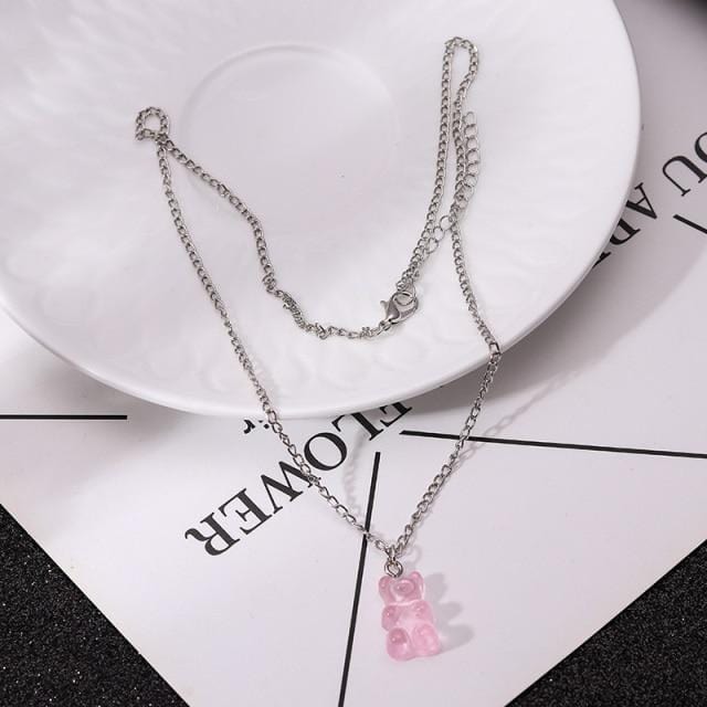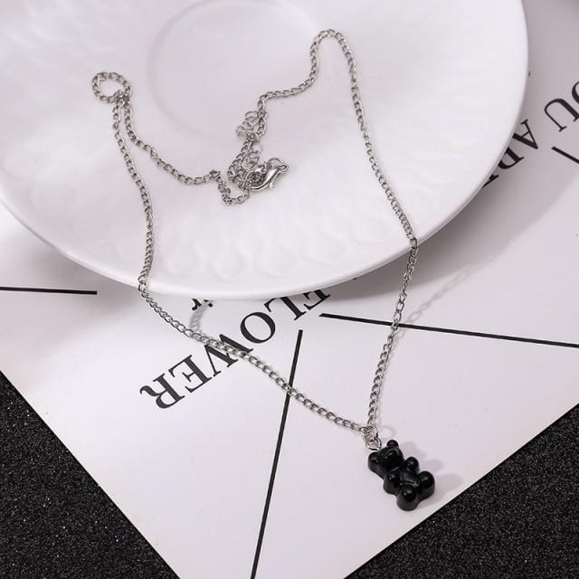 Candy Color Stars Hearts Gummy Mini Bear Chain Necklaces for Women Cute Crtoon Animal Pendants Jewelry Femme Bijoux Collare