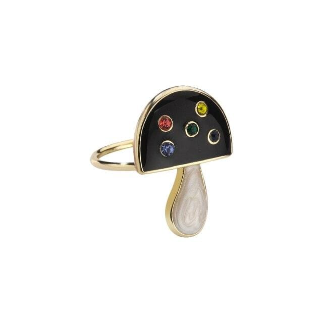 Charm Colorful Crystal Mushroom Rings for Women Aesthetic Enamel Ring Female Tiny Circle Finger Rings Lucky Jewelry Gifts