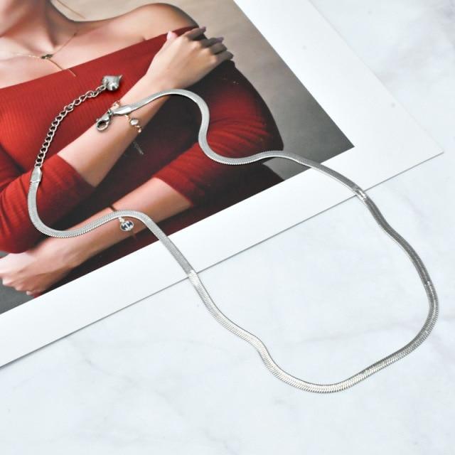 Charm Women Snake Chain Choker Necklace Stainless Steel Gold Silve Color Flat Herringbone Chokers Link for Girls