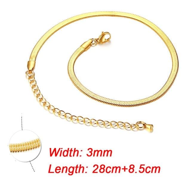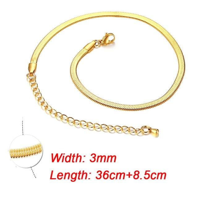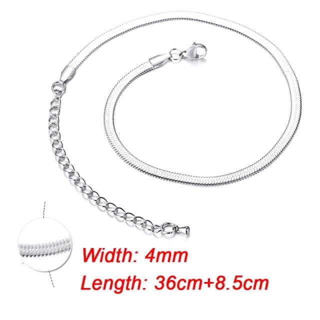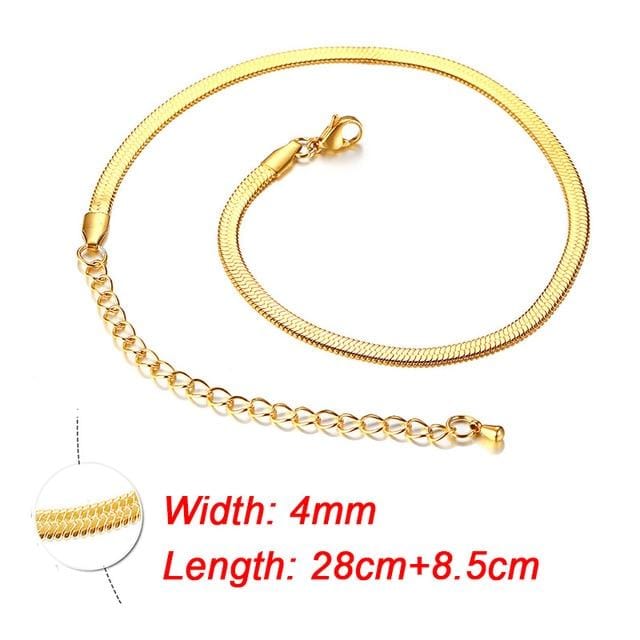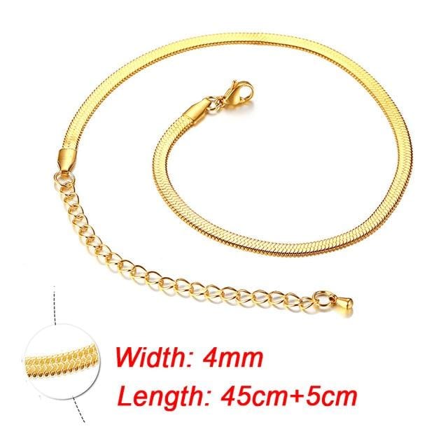 Charm Women Snake Chain Choker Necklace Stainless Steel Gold Silve Color Flat Herringbone Chokers Link for Girls 4mm