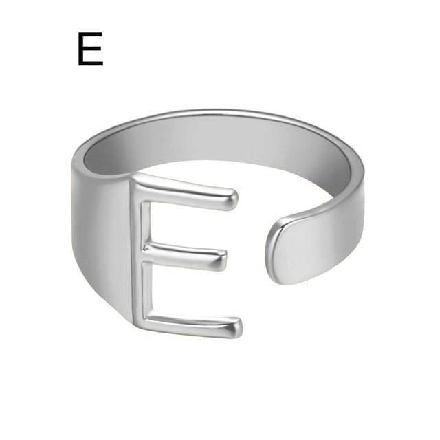 Chunky Wide Hollow A-Z Letter 3Colors Metal Adjustable Opening Ring Initials Name Alphabet Female Party Fashion Jewelry