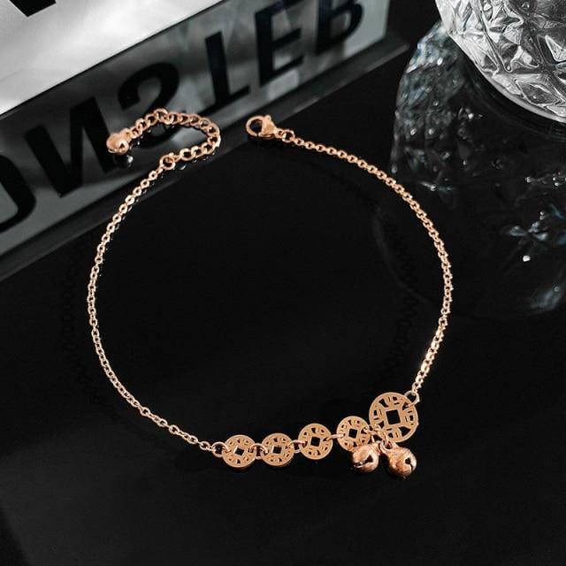 Classic Coin Bell Pendant Titanium Steel Gold Anklet For Woman Fashion Korean Ankle Jewelry Girl's Sexy Swimsuit Party Anklet