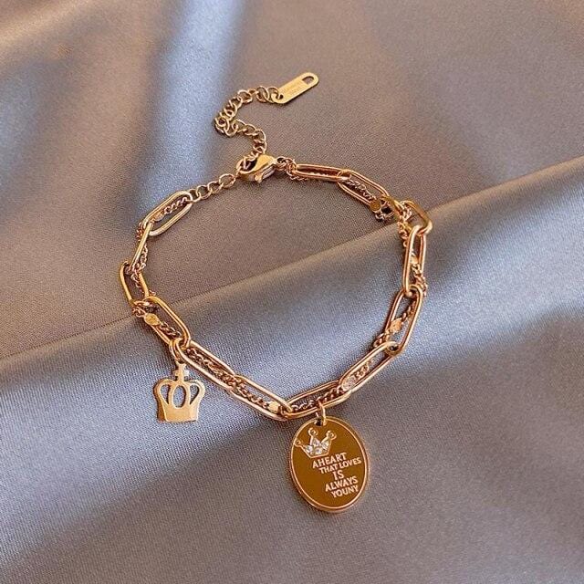 Classic Crown Element Letter Wafer Titanium Steel Bracelet For Woman Fashion Indelible Jewelry Party Girl's Advanced Bracelet