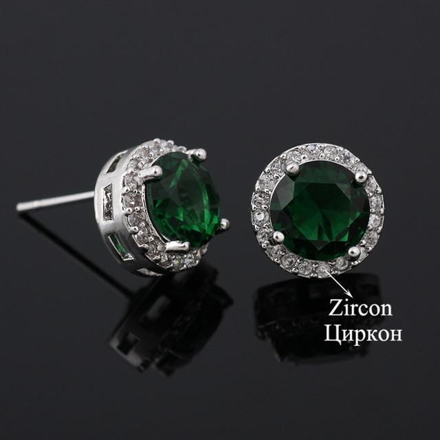 Classic Green AAA Cubic Zirconia Stud Earrings Round Crystal Girl Ear Studs For Women Multicolor Fashion Jewelry brincos AE176