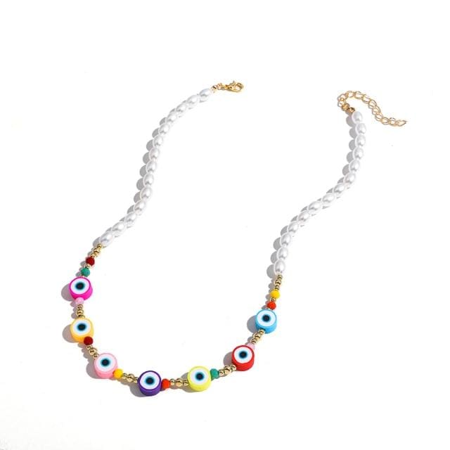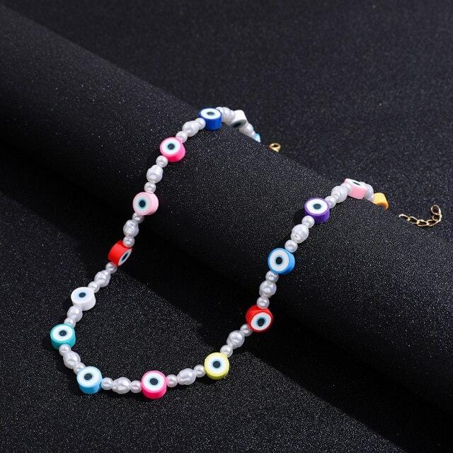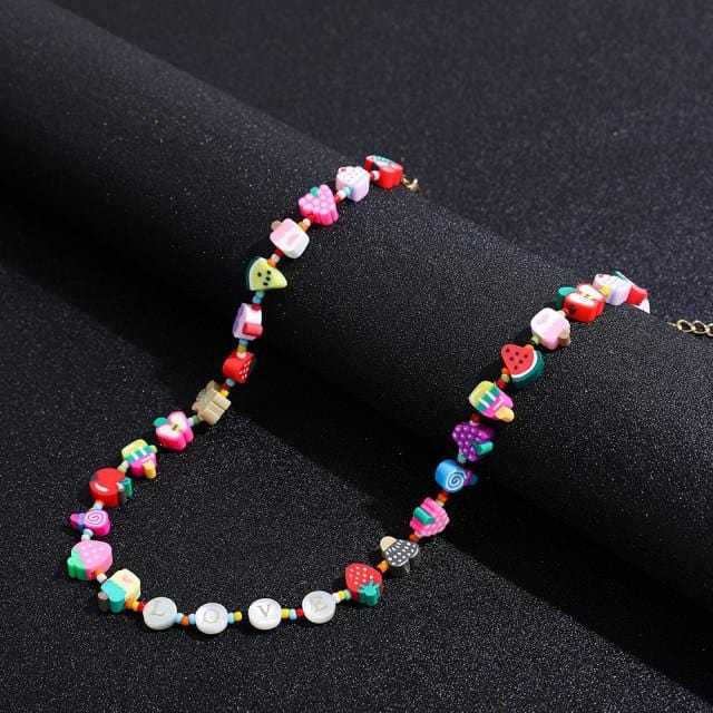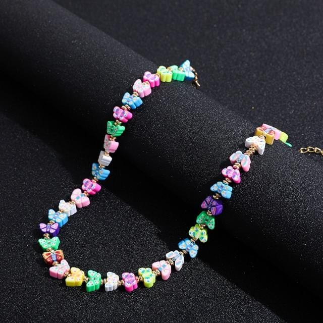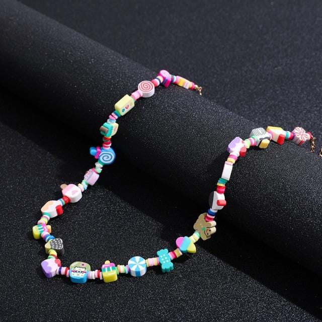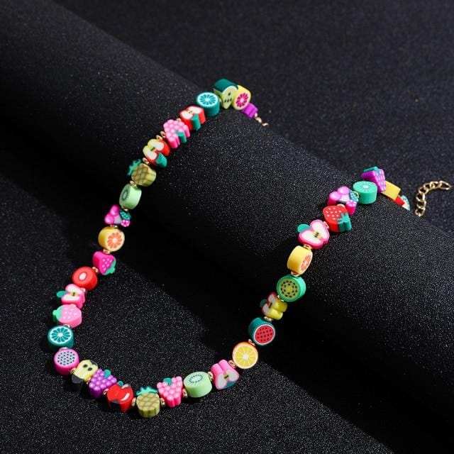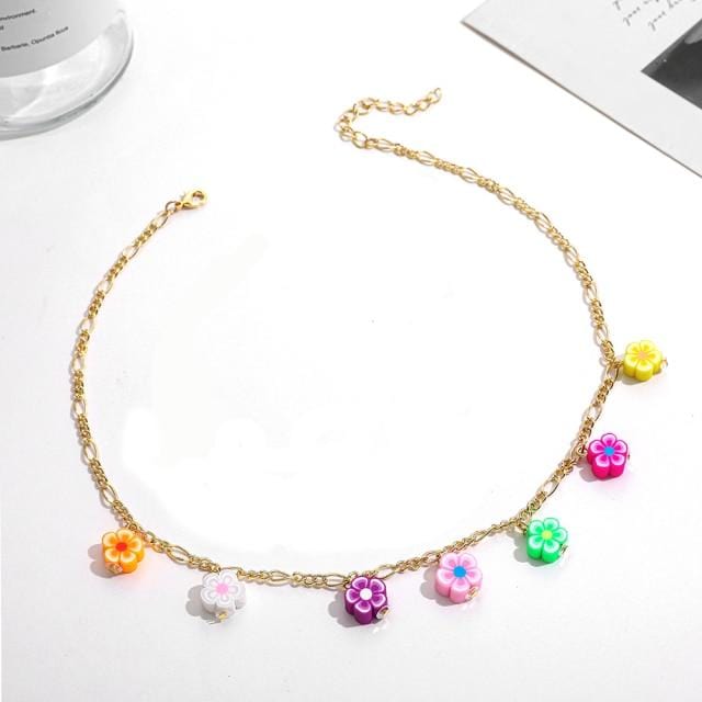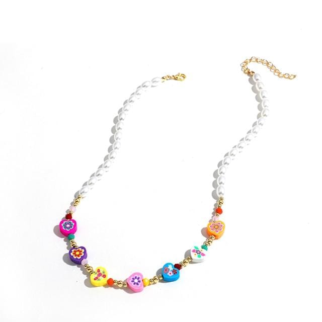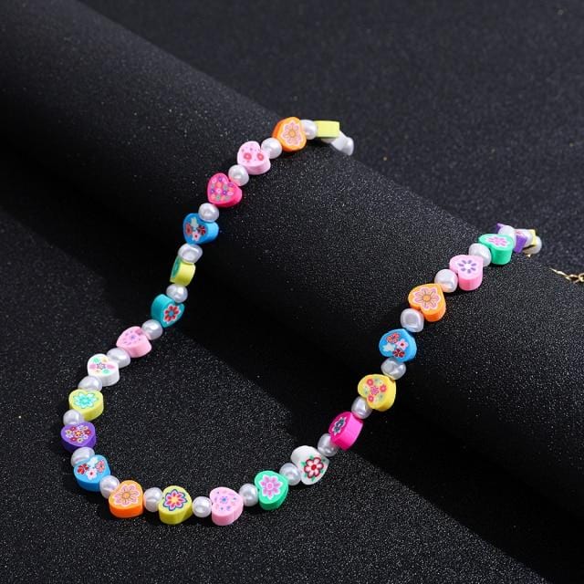 Colorful Flowers Style Soft Polymer Clay Beaded Necklace for Women Girls Bohemian Pearl Beads Choker Necklace Beach Jewelry