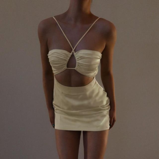 Cryptographic Fashion Summer Halter Sexy Backless Mini Dress Holiday Elegant Skinny Sleeveless Club Party Dresses Bodycon