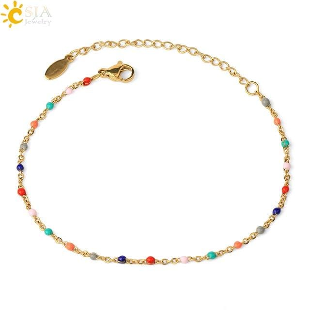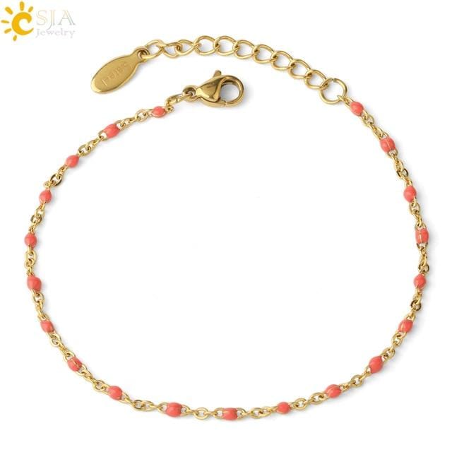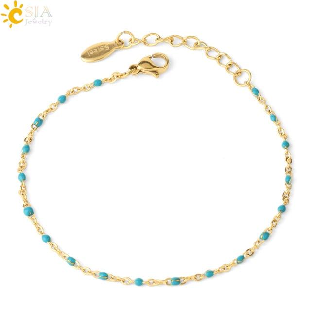 CSJA Luxury Stainless Steel Bracelets for Woman Golden Color Link Chain Beads Ladies Bracelet Femme 2021 Jewelry Pulseira S570