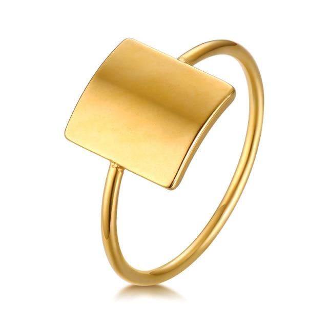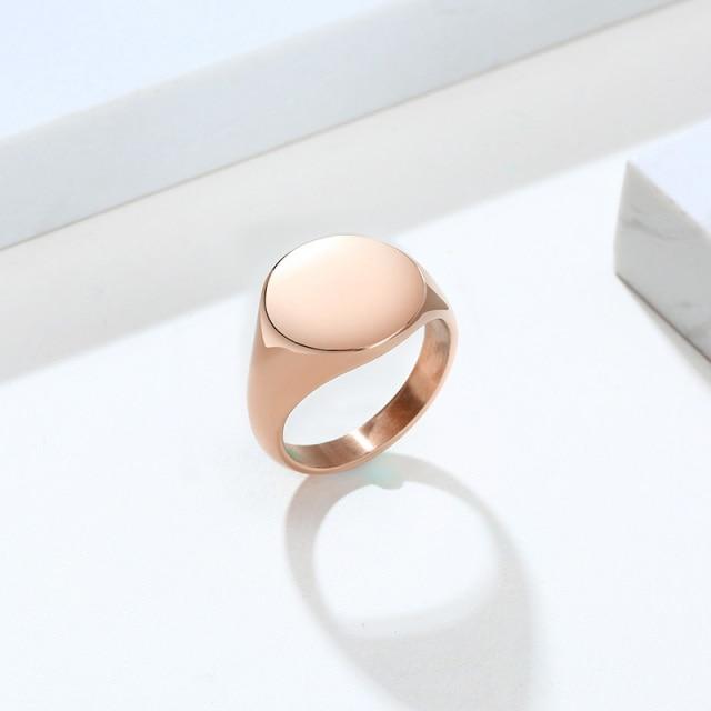 Customized Women Signet Ring Chunky Round Top Initial Letter Stamp Stainless Steel Punk Candid Fashion Jewelry