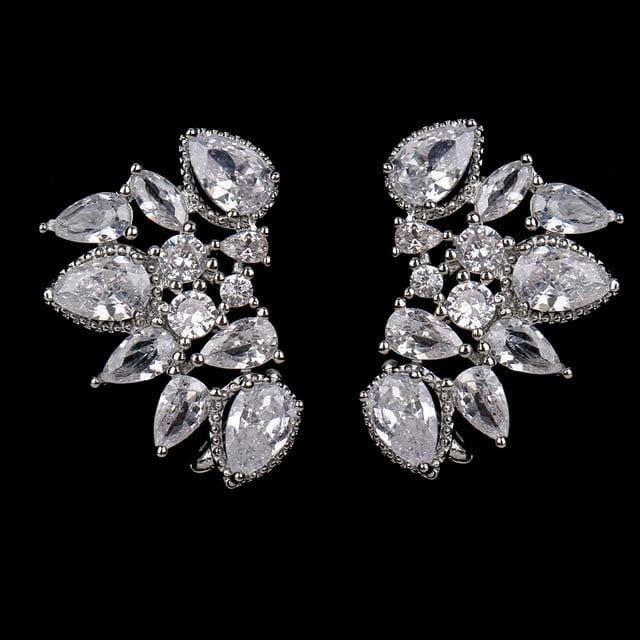Cute Silver Color Statement Flower Stud Earrings Jewelry with CZ Zirconia Crystal Ear Stud for Women Wedding Gift