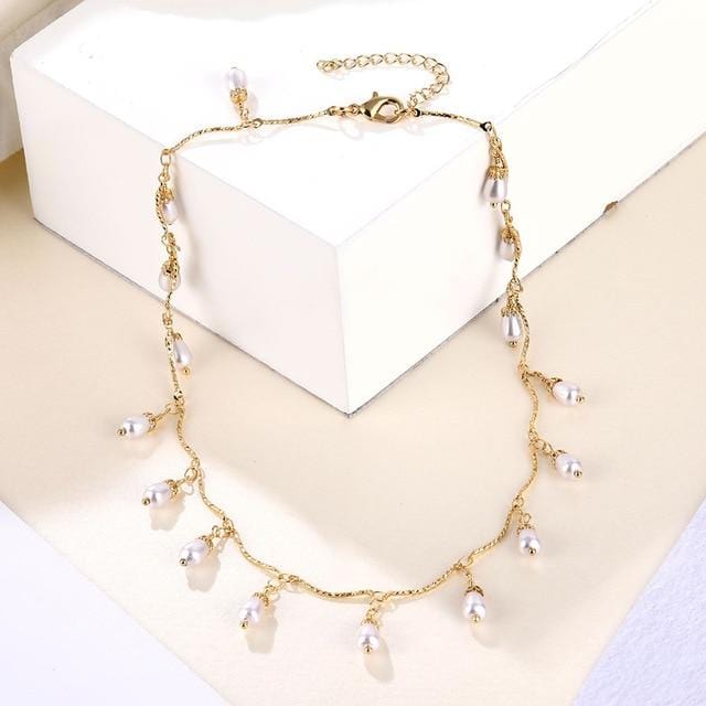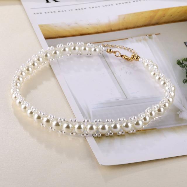 DAXI Beaded Choker Pearl Necklace For Women Gold Chain Necklaces Pendant Collar Chokers Chains Bead Necklace Womens Jewelry 2020